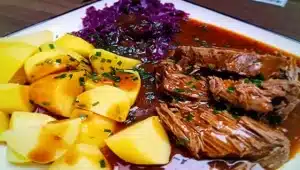 Rinderburgunderbraten mit Kartoffeln und rotkohl Rezept