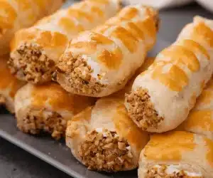 Zutaten 600g Blätterteig 1 Ei 70g Vanillepudding 360 ml (1 2/5 Tassen) Milch 60 g (1/4 Tasse) Zucker 160 ml (3/5 Tasse) Schlagsahne Haselnusskörner Zubereitung 1. Blätterteig ausrollen und in…