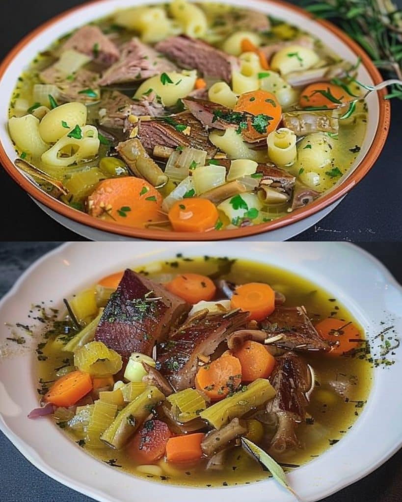 Zutaten: 1 Bund Suppengrün 2 Zwiebeln 2 Zweige Rosmarin 2 kg Rinderbraten Salz und Pfeffer 2 EL Butterschmalz 750 ml Spätburgunder) 2 Lorbeerblätter 4 Wacholderbeeren 2 EL Speisestärke Zubereitung: Suppengrün…