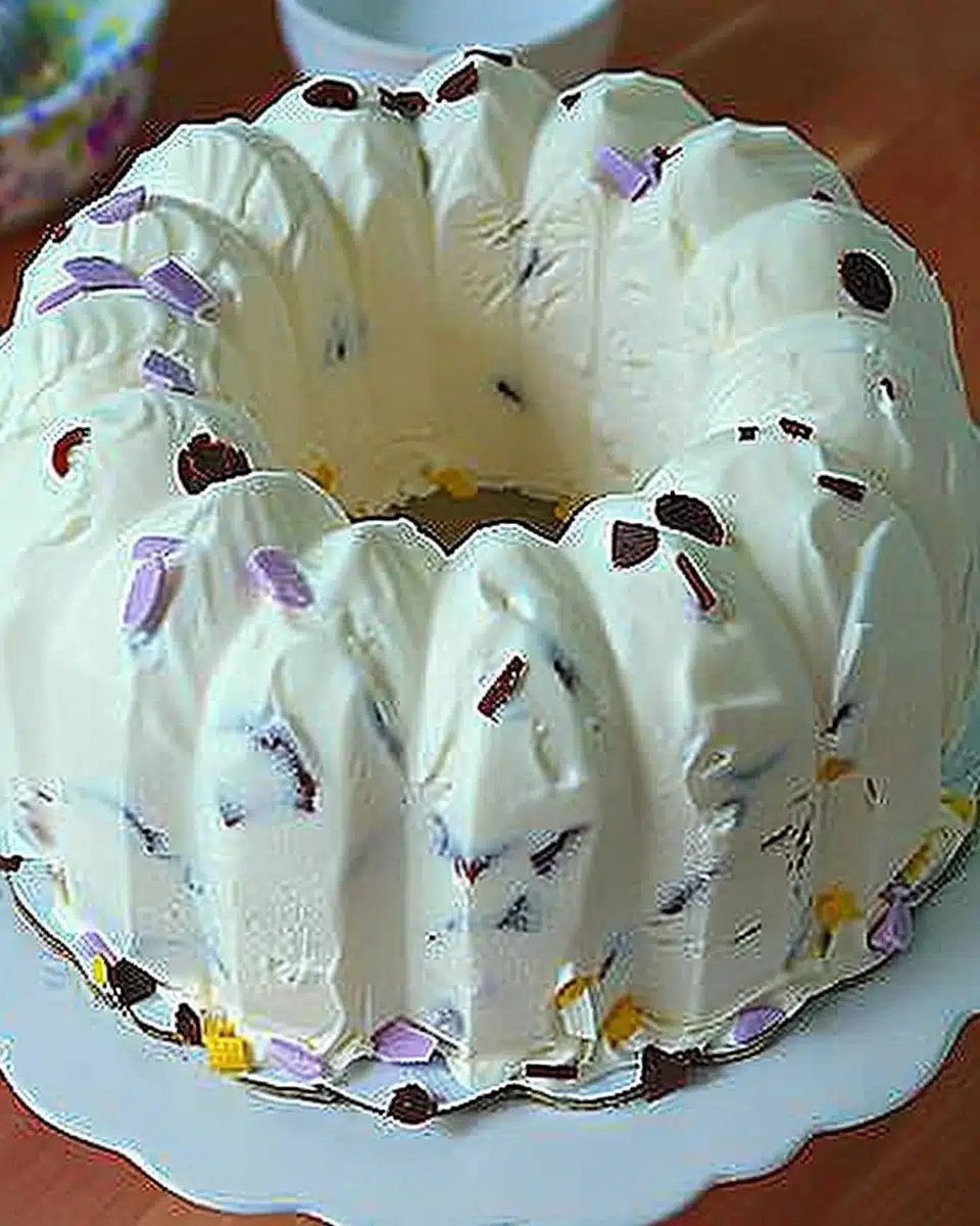 Masse in eine Springform füllen und in den Gefrierschrank bzw. in die Truhe stellen.