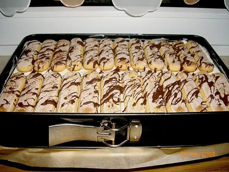 Den erkalteten Pudding auf dem erkalteten Kuchenboden gleichmäßig verteilen. Danach die Sahne darauf geben. Butterk/Biskuitkekse darauf verteilen und mit Schokoglasur bestreichen.