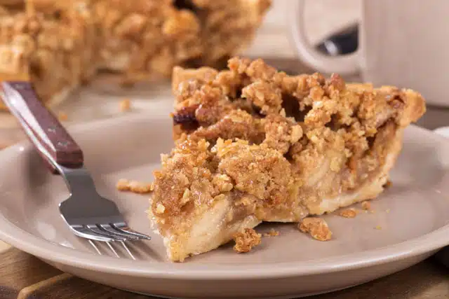- Rollen Sie den Kuchenteig aus, legen Sie ihn in die Kuchenform und drücken Sie ihn fest an den Boden und die Seiten. Dies wird die untere Kruste sein. Stellen Sie ihn in den Kühlschrank, während Sie die Apfelkuchenfüllung zubereiten.