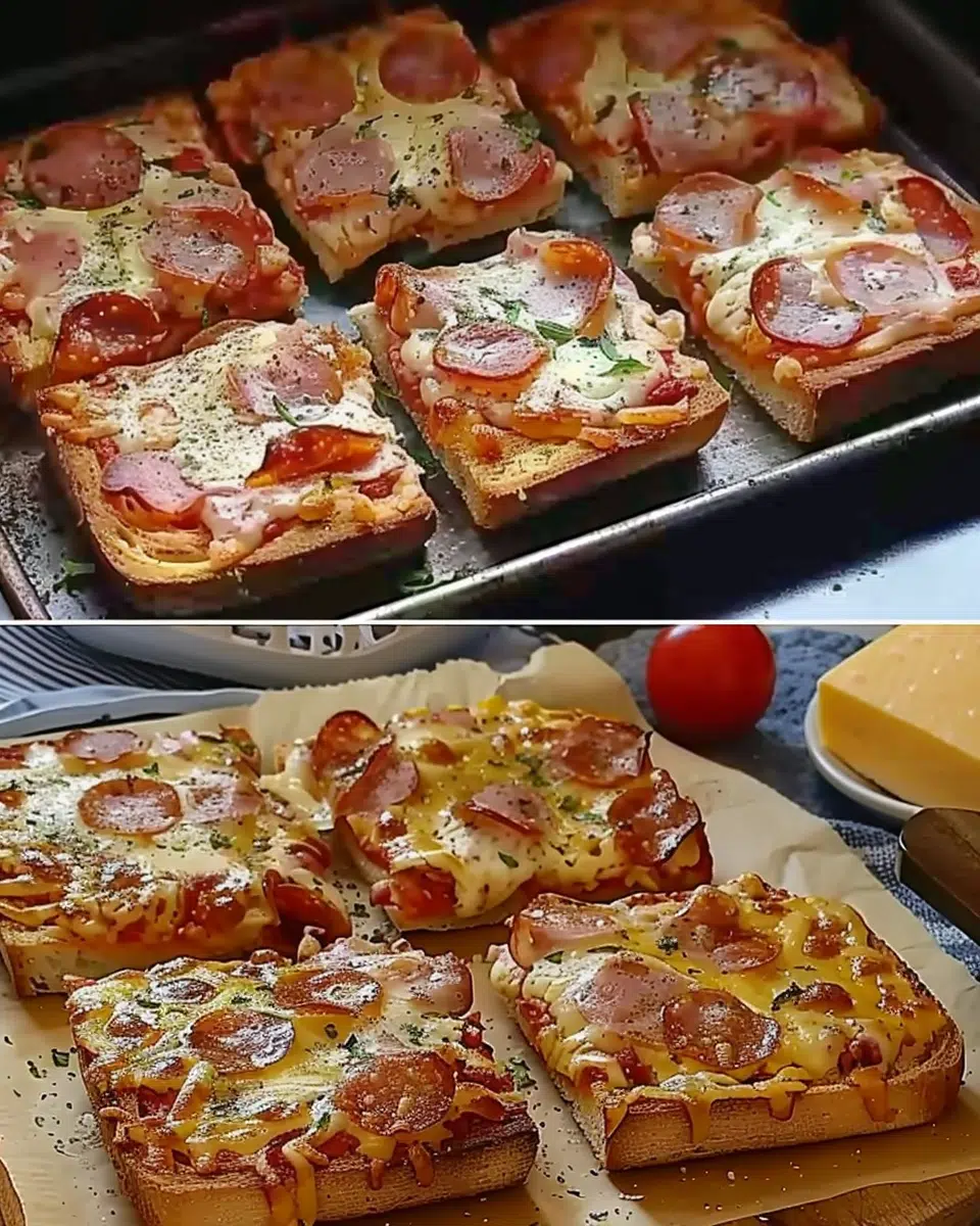 Pizzatoast kann pur genossen oder mit einem frischen Salat als leichte Mahlzeit serviert werden. Auch als Teil eines Buffets oder als Snack für den Filmabend ist er ideal.