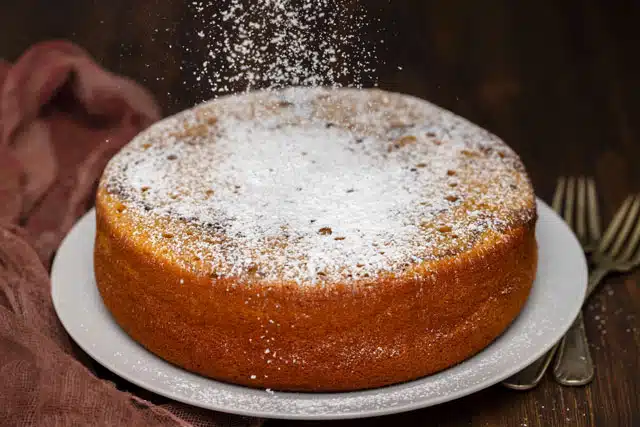 Die Butter mit Zucker und Vanillezucker schaumig rühren. Die Eier einzeln unterrühren und zum Schluss das Mehl mit dem Backpulver untermischen. Den Teig in eine gefettete Springform streichen.