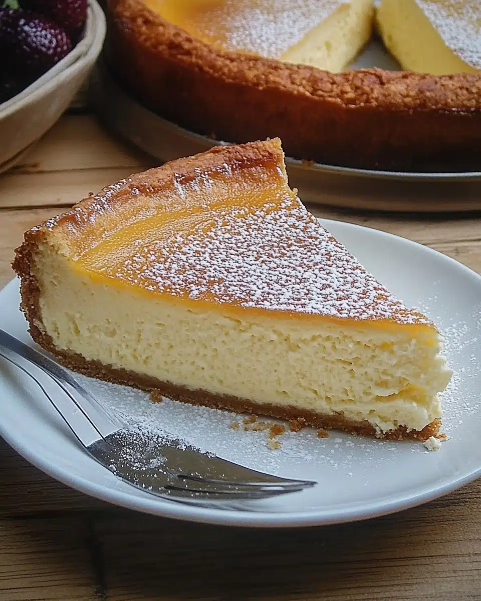 Achtung: Den Kuchen erst nach dem völligen Erkalten aus der Form nehmen, da unmittelbar nach dem Herausnehmen aus dem Backofen die Konsistenz der Quarkmasse noch zu weich ist.