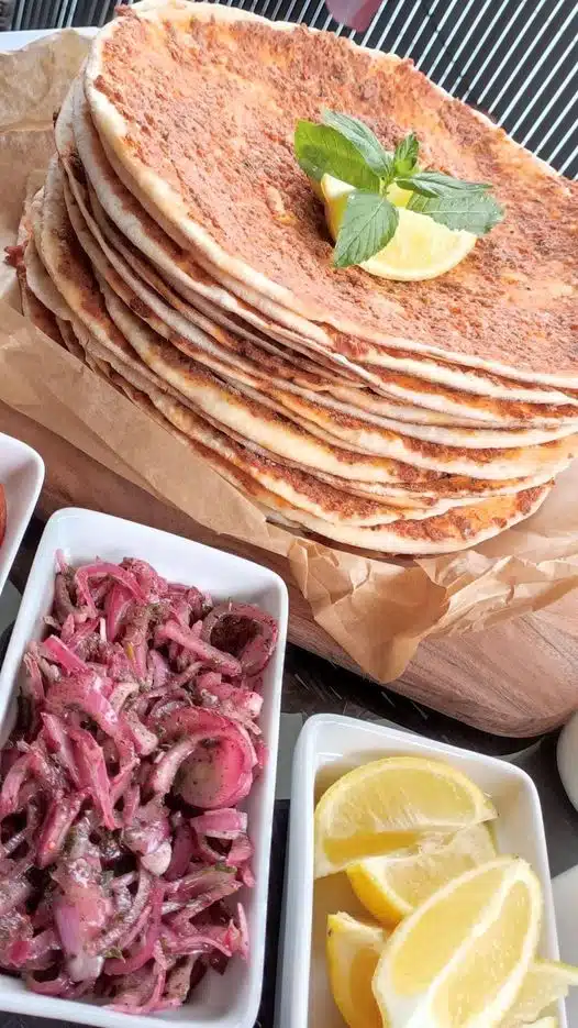 Die Lahmacun könnt Ihr dann entweder im Backofen backen, in einer Pizzapfanne, normalen Pfanne oder auch auf einem Kontaktgrill. Hohe Hitze und gute 5-8 Minuten backen. Das ganze geht ziemlich shcnell da der Boden und Belag sehr dünn ist.