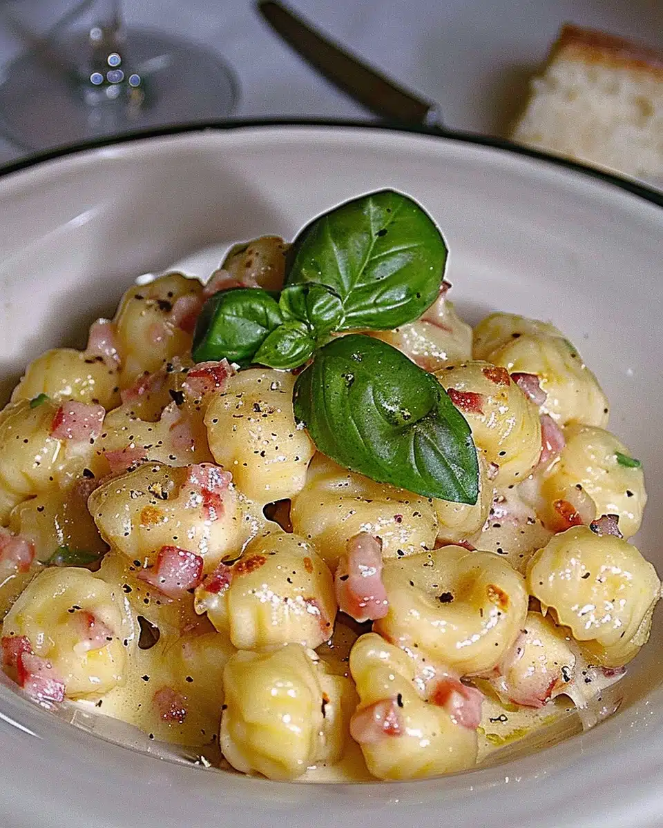 Gnocchi mit Käse Knoblauch Schinken Soße