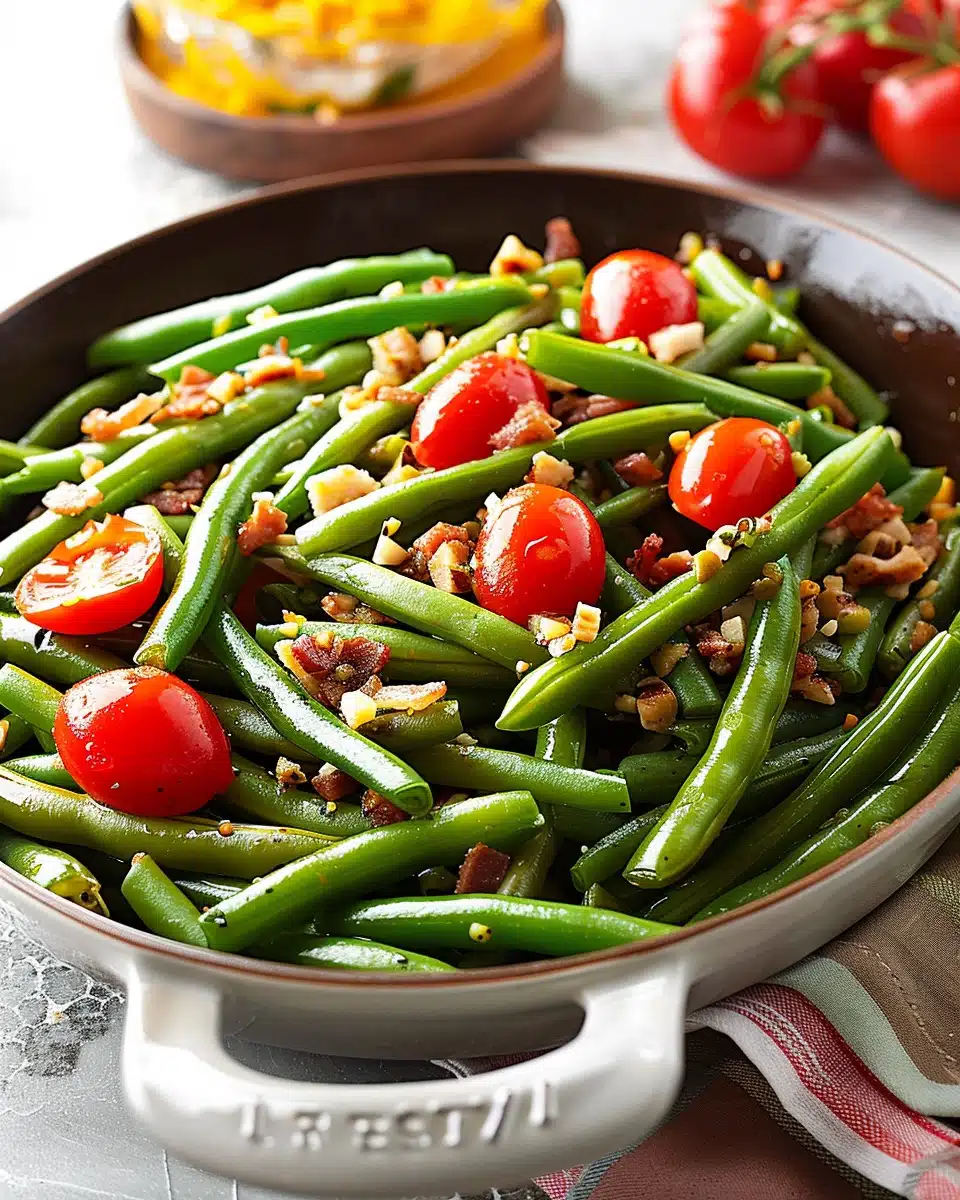 Vor dem Servieren den Bohnensalat nochmals mit Salz und Pfeffer abschmecken und durchmischen.