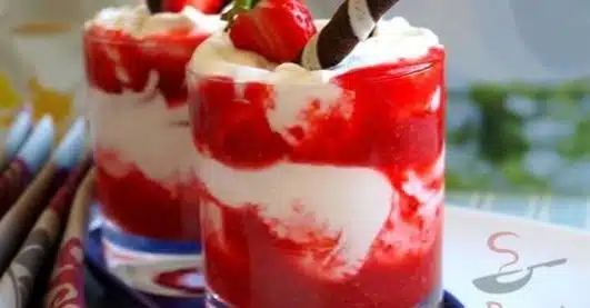 Die Quark-Creme und das Erdbeerpüree abwechselnd in Gläser schichten. Kalt stellen und dann servieren.