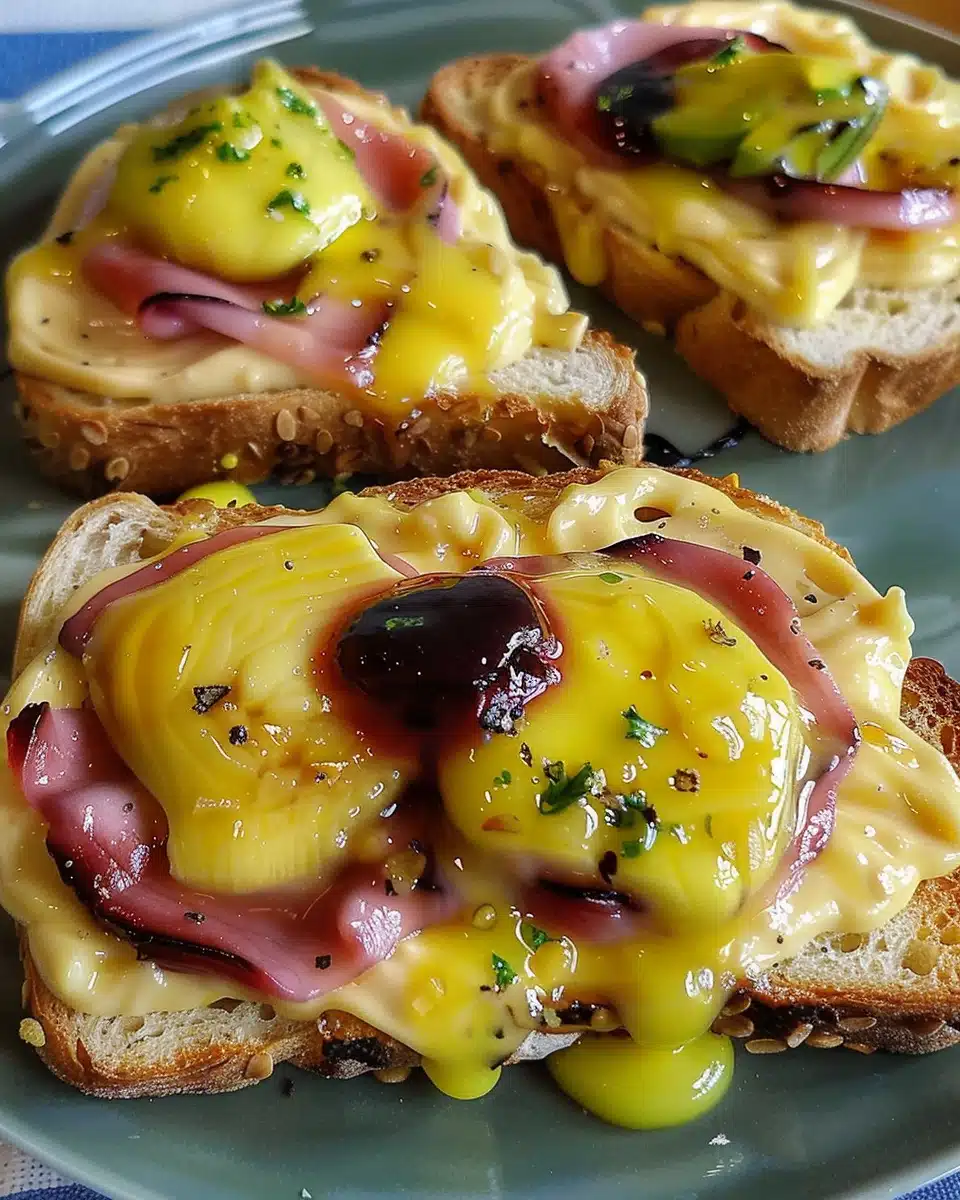 3. Nun, wo sich über dem Loch der Ananasscheibe eine braune Stelle bildet, sollte der Hawaitoast herausgenommen und nach 1 – 2 min Abkühlung gegessen werden.