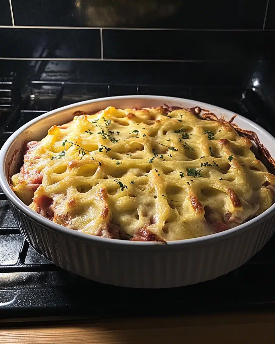 Kartoffel-Hack-Auflauf mit Speckkruste