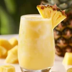 Mit einer Ananasscheibe oder einem kleinen Schirmchen garnieren. Am besten frisch genießen, direkt nach dem Mixen.