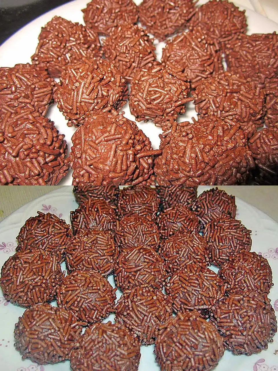 Danach die Kugeln in den Schokostreuseln wälzen. Auf eine Platte legen und wieder für ca. 1 Stunde in den Kühlschrank stellen.