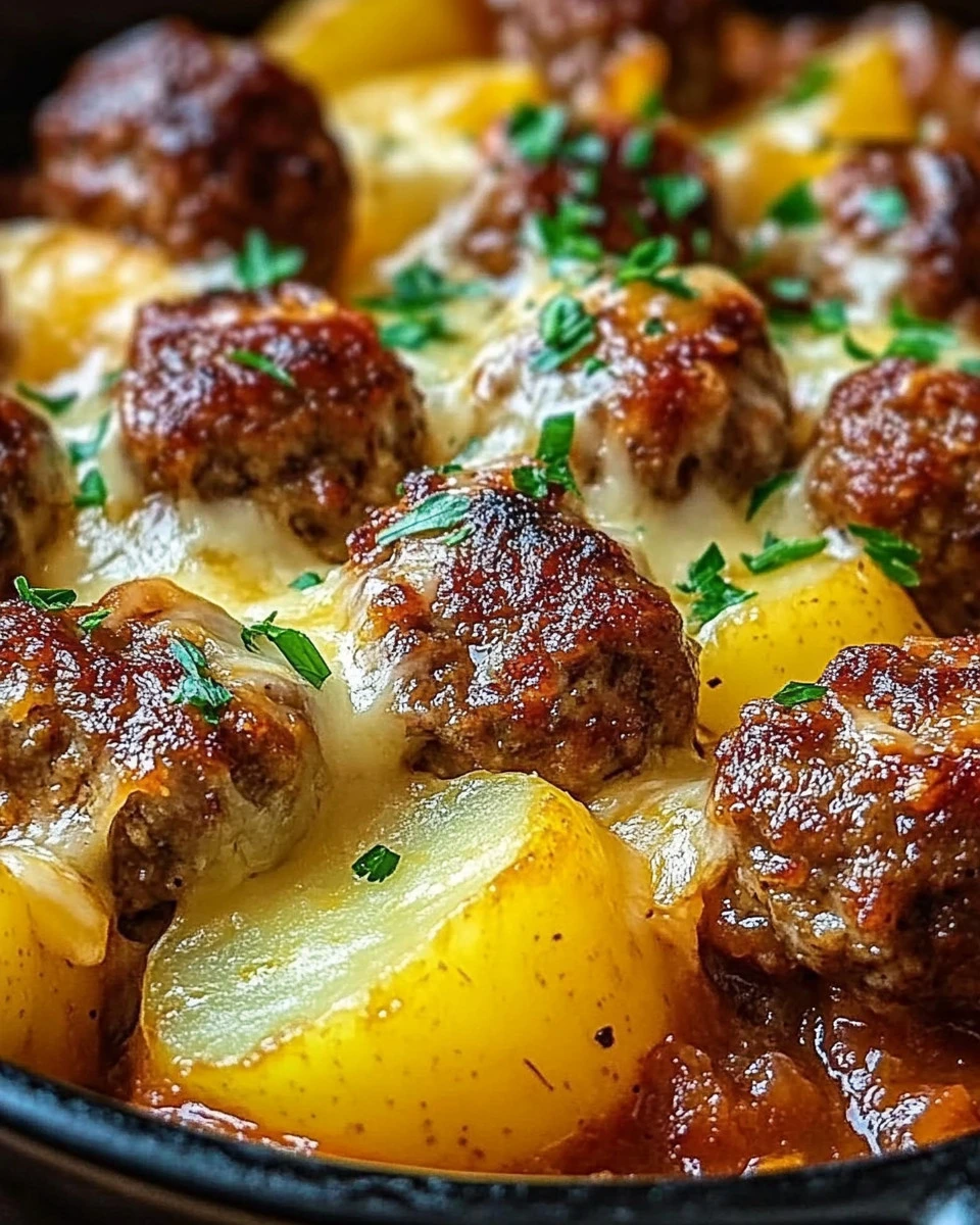 Saftiger Hackbällchen-Auflauf mit cremigen Kartoffeln