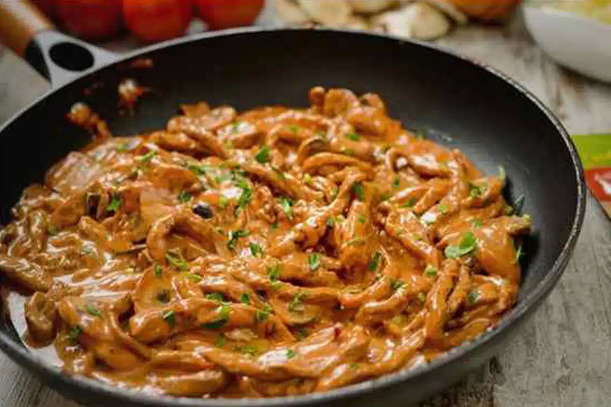 Schnitzelstreifen in Senfsahnesoße, schnelles Abendessen