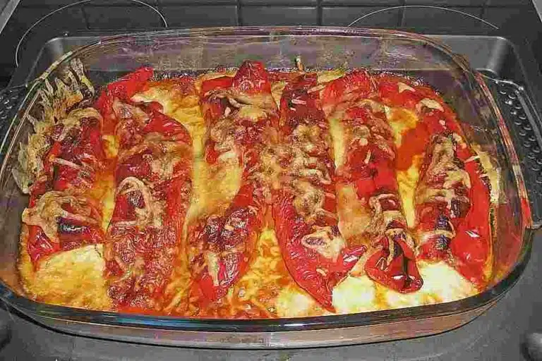 Köstliche überbackene Spitzpaprika mit würzigem Hackfleisch und sahniger Käsekruste – ein einfaches und leckeres Rezept!